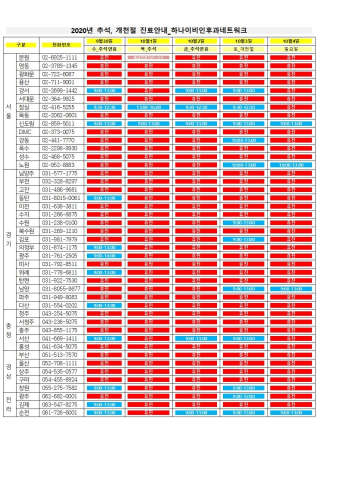 하나이비인후과네트워크 [2020년 추석 진료안내]