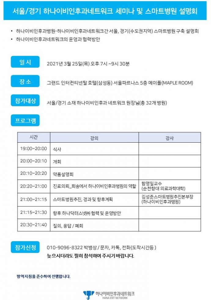 서울_경기지역 하나이비인후과 네트워크 세미나 예정