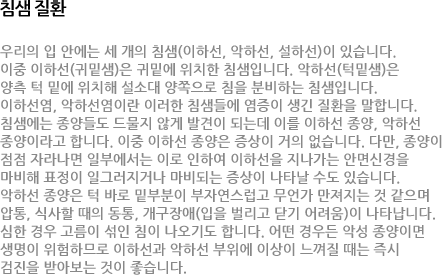 HOME  |  진료정보  |  목질환정보  |  침샘